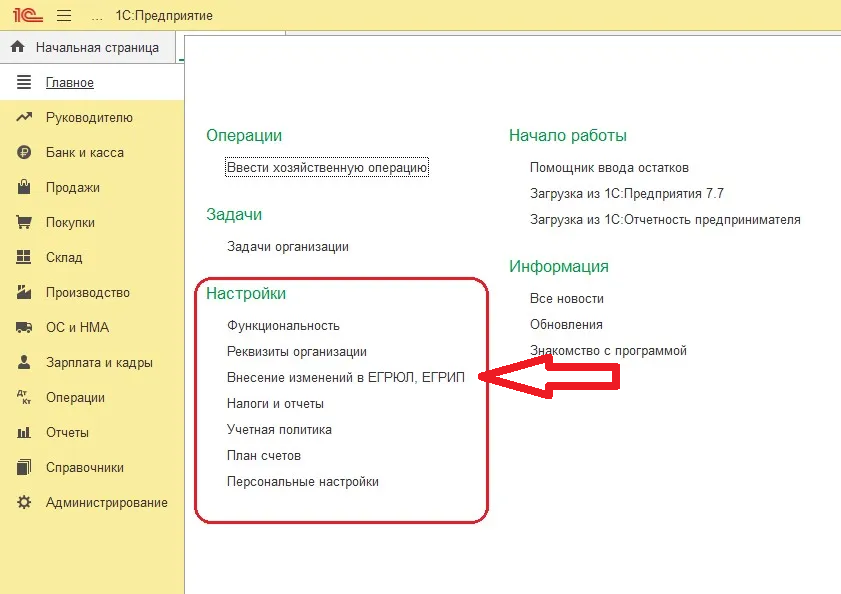Зайдите в меню «Настройки - Основное - Внесение изменение в ЕГРЮЛ»