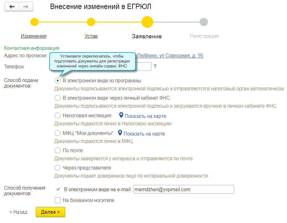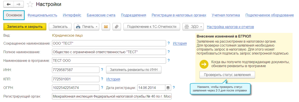 Отправка документов для регистрации изменений в ЕГРЮЛ, ЕГРИП из программы 1С
